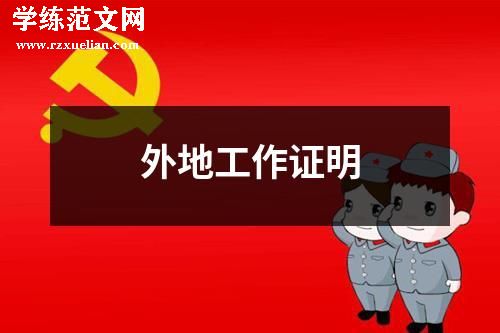 无论是在学校还是在社会中,大家对证明都再熟悉不过了吧,证明是持有者用以证明自己身份、经历或某事真实性的一种凭证。什么样的证明才是规范的呢?以下是小编为大家整理的外地工作证明模板,希望能够帮助到大家。